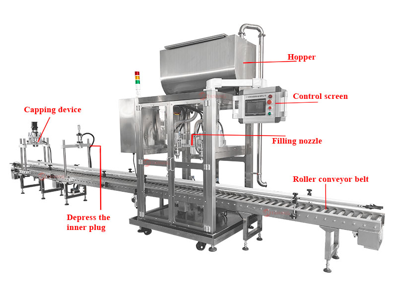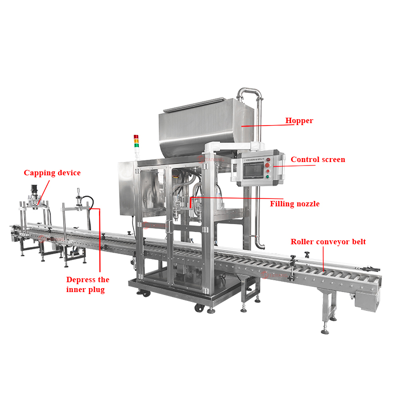 精确称重,当桶内产品达到设定重量时,灌装机将立即停止灌装操作,以确保每个桶的灌装量准确无误。