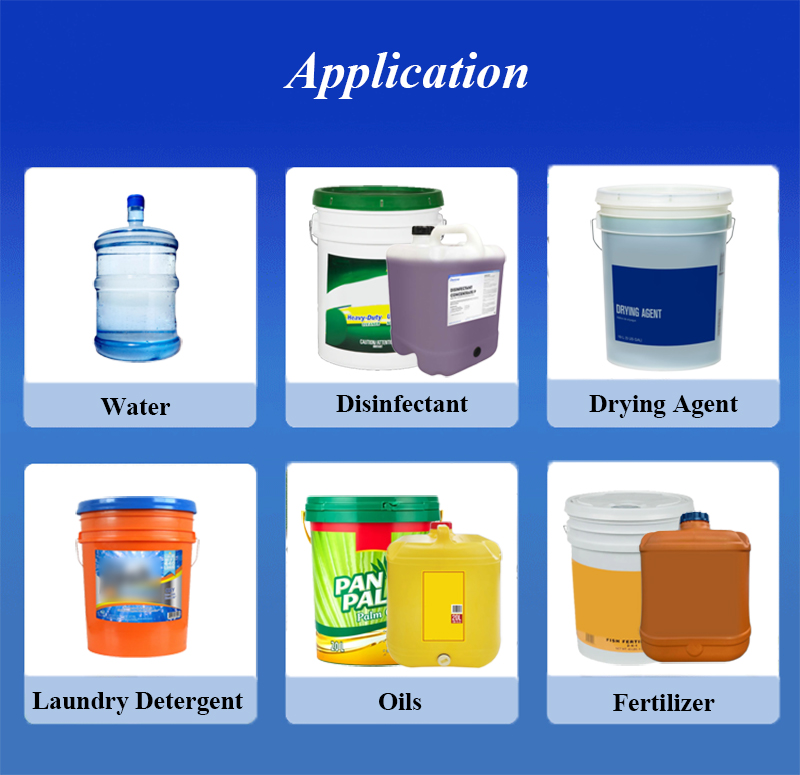 它可以灌装桶装水、食用油、洗衣粉、消毒剂、玻璃瓶装水、润滑油、叶面肥、纯净水、防冻液等物料。