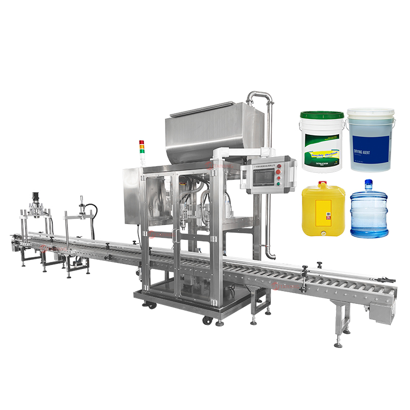 这款太阳双头大容量称重灌装机适用于20升左右大容量桶装产品的生产需求。