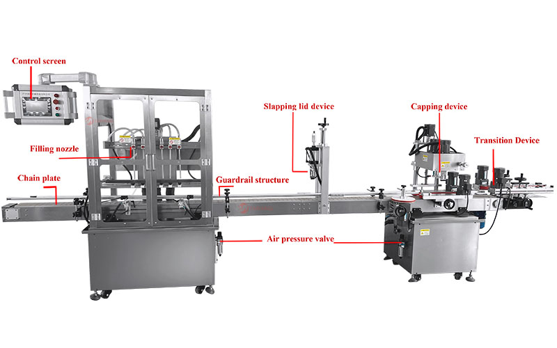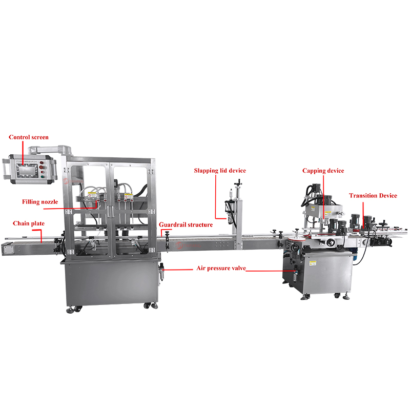 采用容积式活塞泵及气动控制单向阀,适用于各类液体灌装。可根据生产需求定制,增加或减少灌装头数量,可选配 4/6/8/10 头或更多。